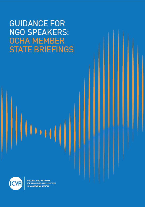 ICVA is committed to ensuring the voices of local actors and crisis-affected people are at the centre of global advocacy initiatives. Our work aims to ensure consistent NGO representation, and particular local NGO representation at humanitarian briefings, policy fora and dialogues with UN agencies, donors and governments, including UN Member State briefings. This paper outlines key considerations and practical tips for NGO speakers representing at UN Member State briefings in Geneva.