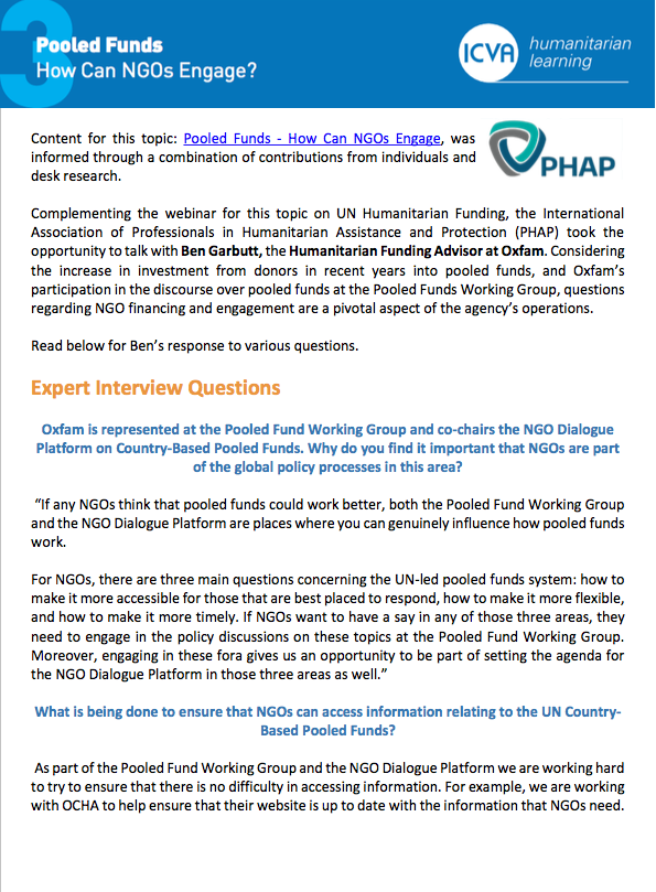 Click to read Ben’s responses to a series of questions posed on NGO access to pooled funding.