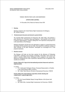 Annotated Agenda – UNHCR High Commissioner’s Dialogue on Protection Challenges Theme – Protection Gaps and Resources