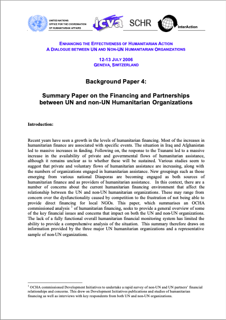 Background Paper – OCHA Summary Paper on the Financing and Partnerships between UN and Non-UN Humanitarian Organizations