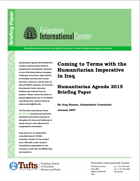 Briefing Paper – Feinstein International Center Humanitarian Agenda 2015 Coming to Terms with the Humanitarian Imperative in Iraq