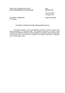 Calendar of Work – UNHCR Standing Committee 47th Meeting Work Programme for 2010
