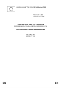 Communication – Commission of the European Communities Towards a European Consensus on Humanitarian Aid