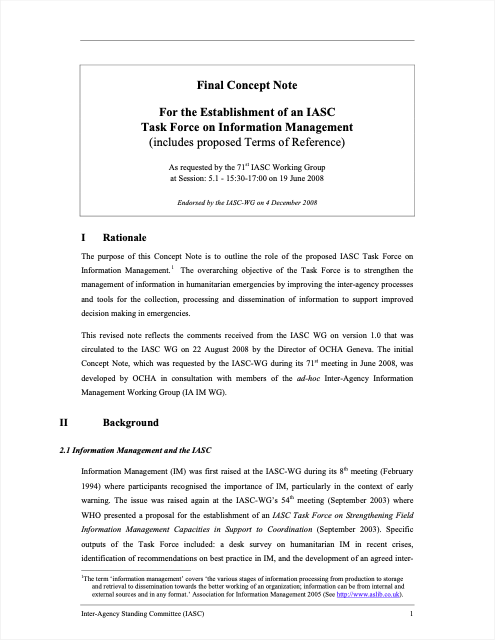 Concept Note – Inter-Agency Standing Committee Working Group For the Establishment of an IASC Task Force on Information Management