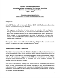Discussion Paper – ICVA Informal Consultative Meeting on Extending the Input in the Work of the Executive Committee from Non-Governmental Organizations