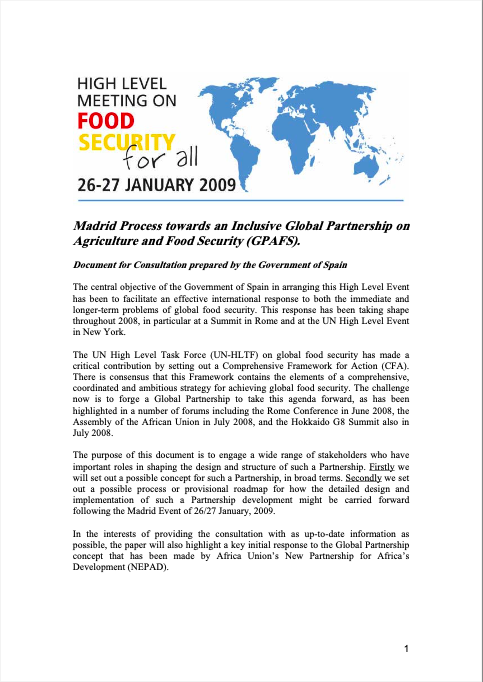 Document – Government of Spain Madrid Process towards an Inclusive Global Partnership on Agriculture and Food Security (GPAFS)