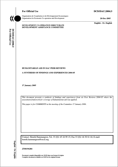 Document – Organization for Economic Co-operation and Development Humanitarian Aid in Development Assistance Committee Peer Reviews A Synthesis of Findings and Experiences 2004-05