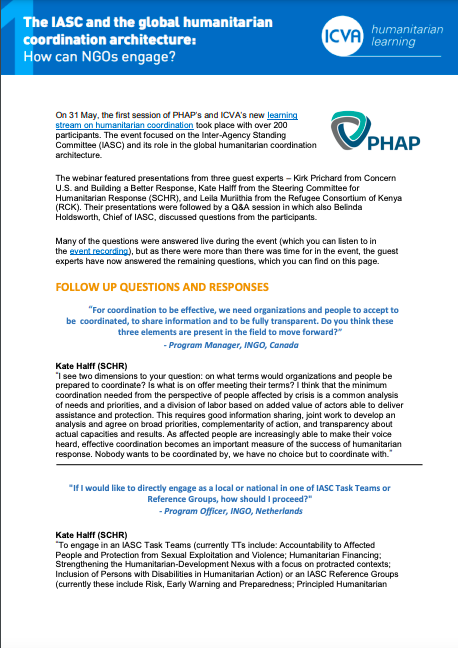 Follow up questions – Topic 1:Global humanitarian coordination mechanism