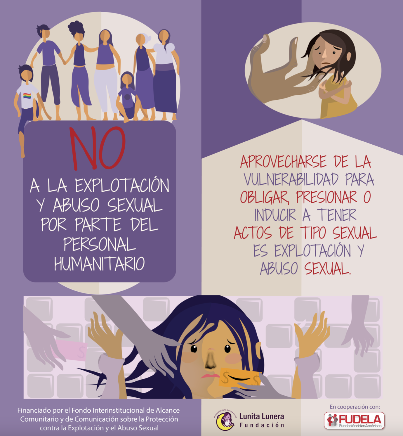 - Radio spots in Spanish which provide information on what constitutes PSEA and where and how to report, targeting migrants and refugees.
