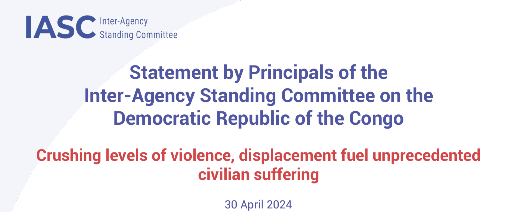 Statement by Principals of the Inter-Agency Standing Committee on the Democratic Republic of the Congo, Crushing levels of violence, displacement fuel unprecedented civilian suffering
