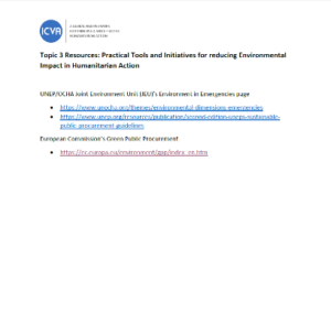 Practical Tools and Initiatives for reducing Environmental Impact in Humanitarian Action