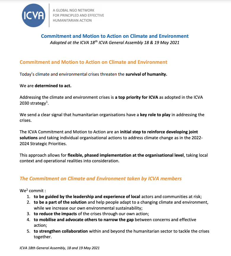 Motion to Action on Climate and Environment adopted by ICVA members at the General Assembly of 18-19 May 2021.